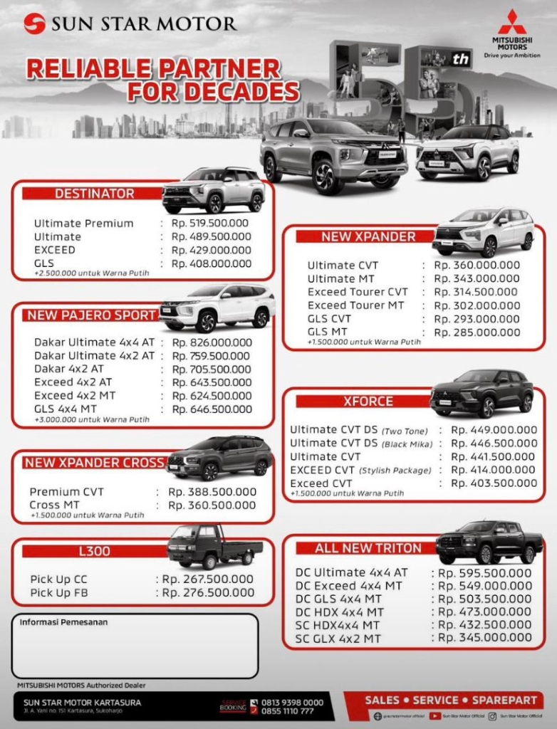 Penjualan istimewa ini hanya berlaku untuk waktu terbatas. Rasakan kenyamanan, keamanan, dan gaya berkendara dengan Mitsubishi. Hubungi Heigo Tangada di nomor 0812-8383-0096 sekarang untuk mendapatkan penawaran terbaik!